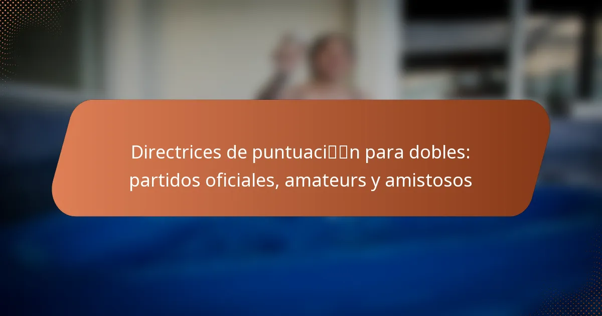 Las pautas de puntuación en dobles pueden diferir significativamente entre partidos oficiales, amateur y amistosos. Los partidos oficiales se adhieren a regulaciones estrictas establecidas por los organismos de gobierno, mientras que los juegos amateur pueden introducir una puntuación flexible para mejorar el disfrute. En los partidos amistosos, el enfoque se desplaza hacia la diversión y la interacción social, lo que resulta en prácticas de puntuación relajadas que priorizan el disfrute del jugador sobre las reglas formales.