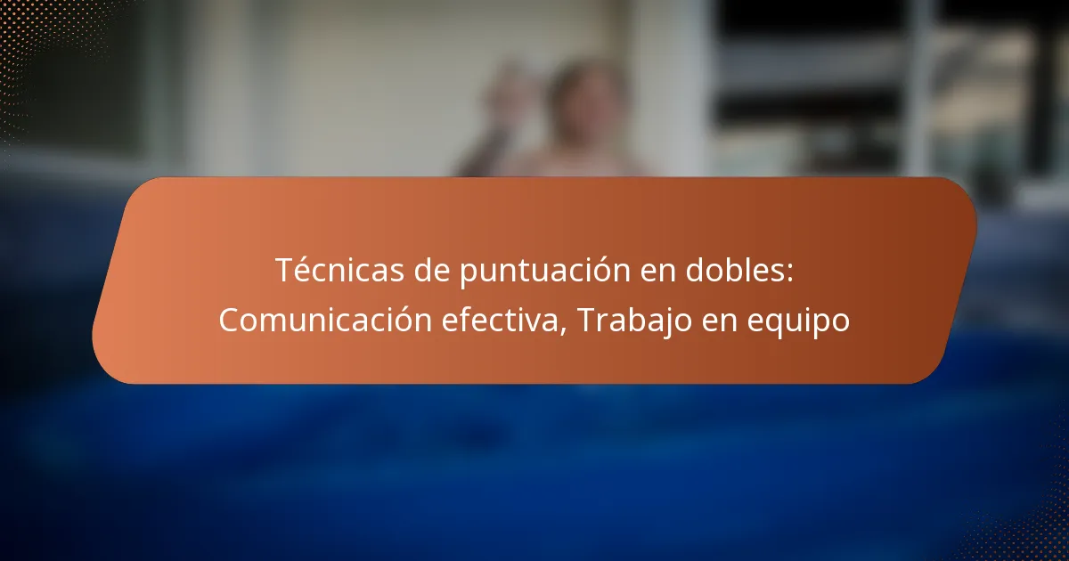 En los deportes de dobles, las técnicas de puntuación efectivas se basan en una comunicación y trabajo en equipo sólidos, lo que permite a los jugadores sincronizar sus movimientos y estrategias. Al centrarse en señales claras y roles definidos, los equipos pueden mejorar su rendimiento, reducir errores y aprovechar las oportunidades de puntuación.